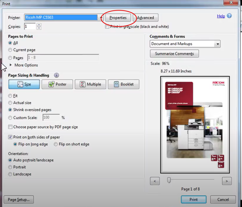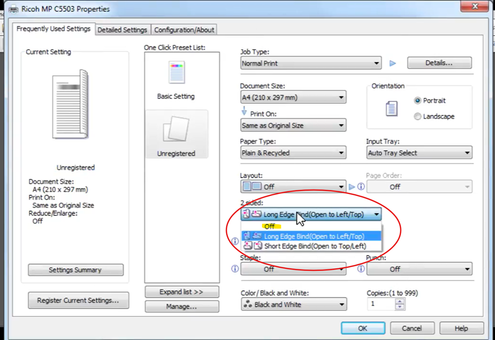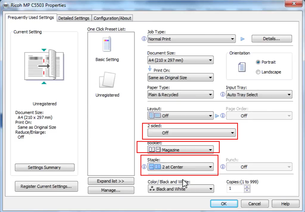 You’re using the Ricoh PostScript (PS) driver (best for finishing)